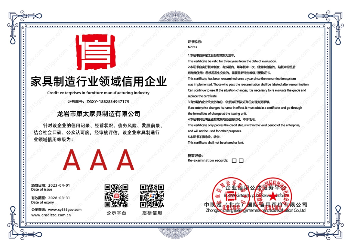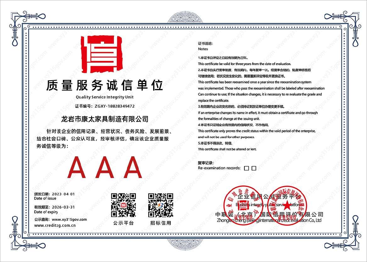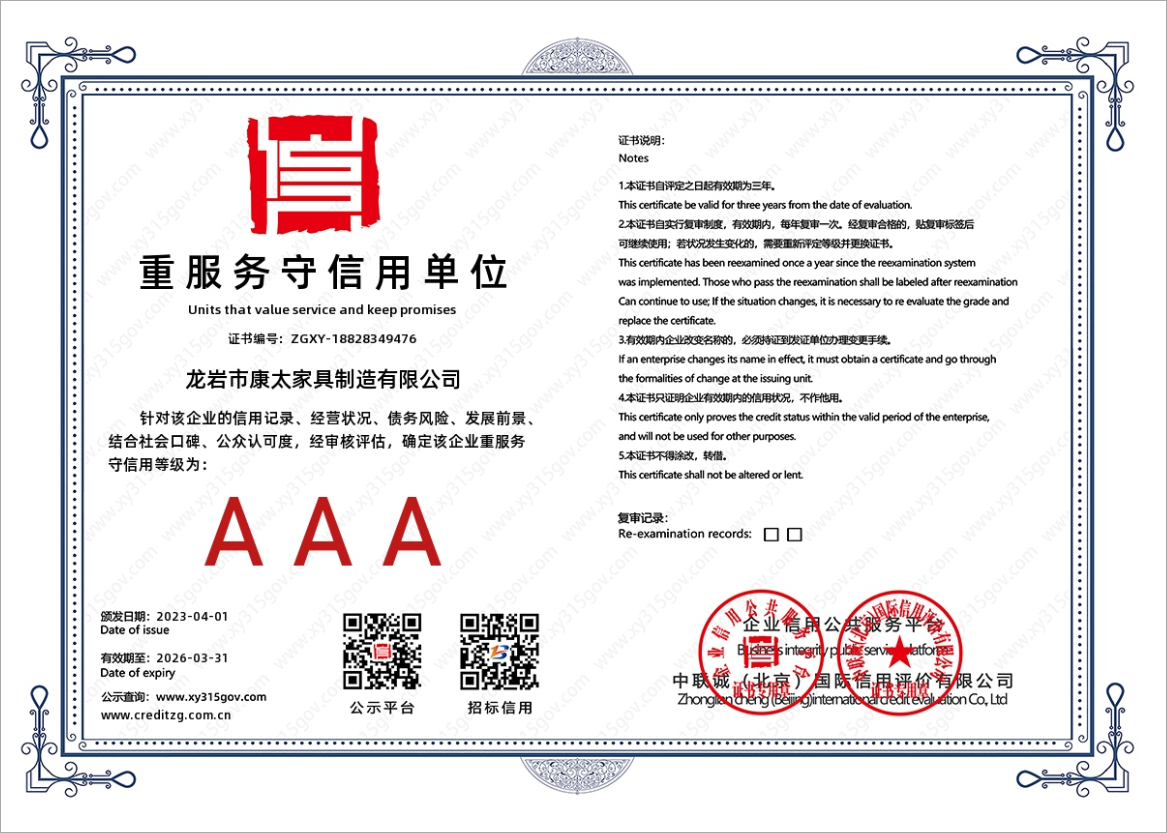 康太被评为“福建省消费者测评无投诉单位”以“客为尊、环保至上”为康太经营理念,康太立志打造一个国际化的高端定制家具品牌,得到了广大消费者的一致认可。