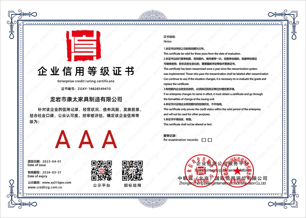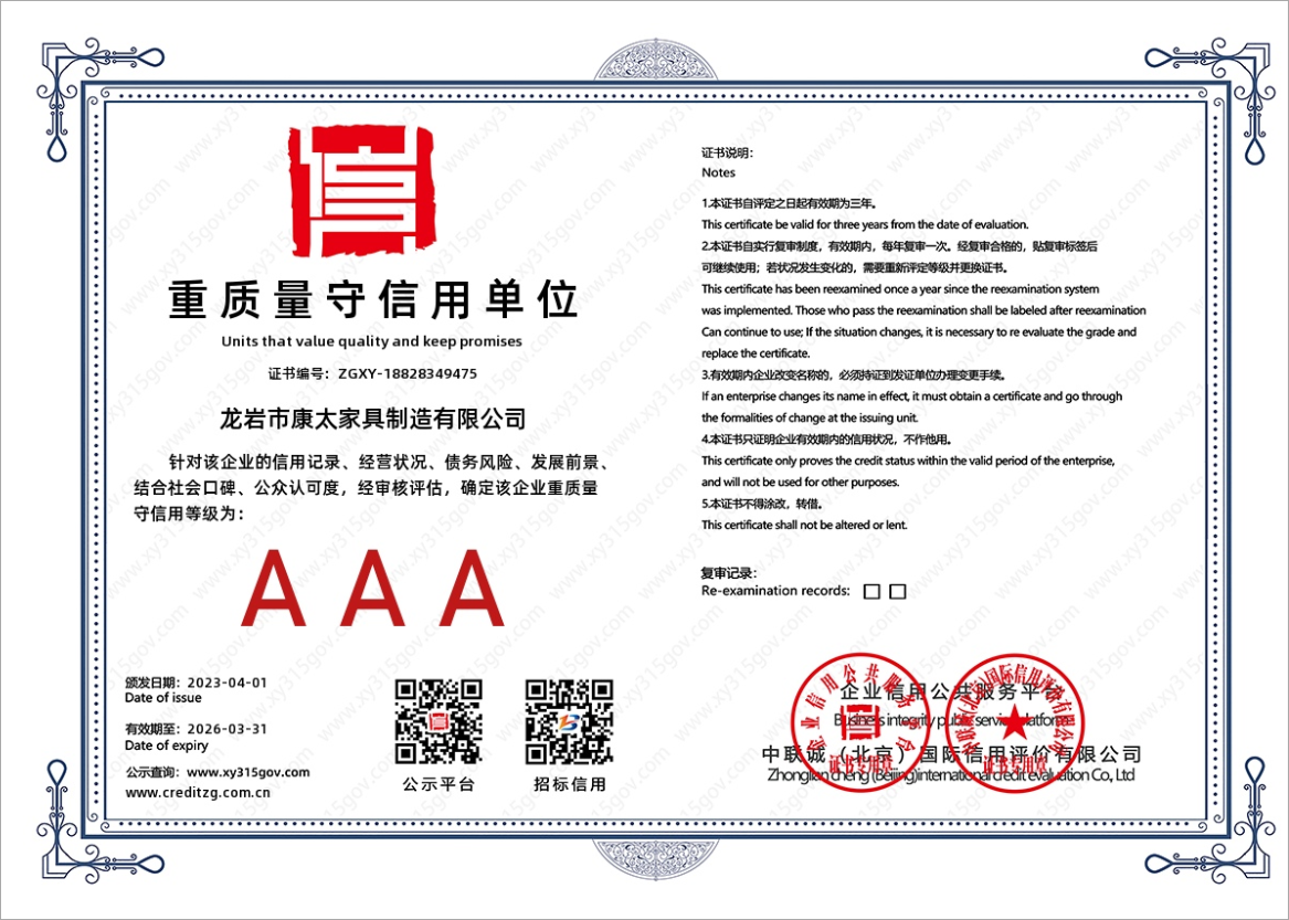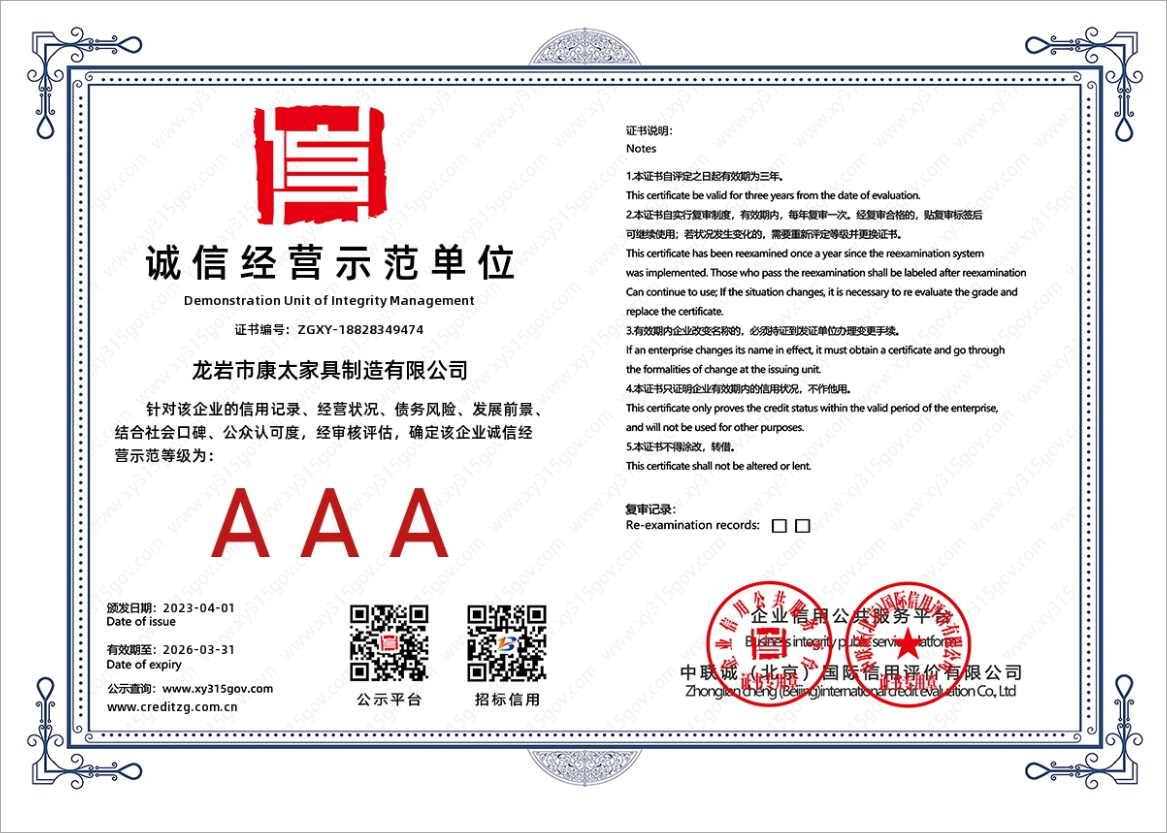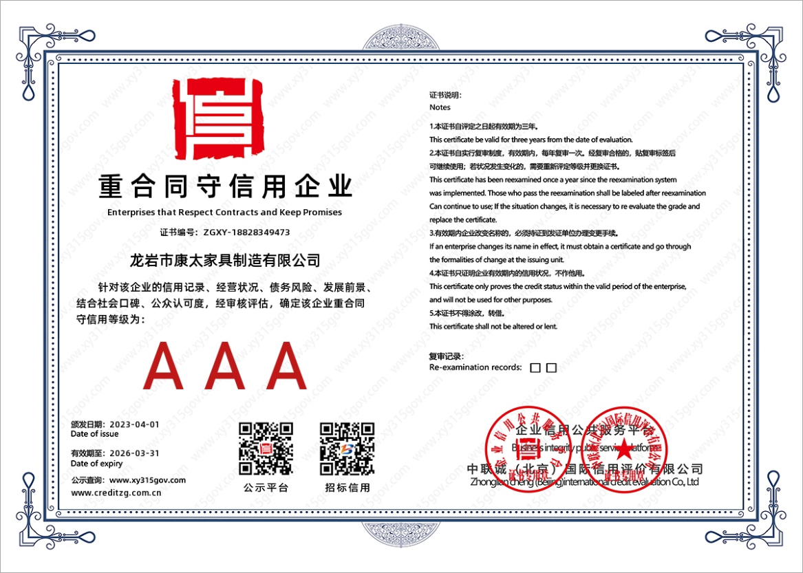 康太被评为“福建省消费者测评无投诉单位”以“客为尊、环保至上”为康太经营理念,康太立志打造一个国际化的高端定制家具品牌,得到了广大消费者的一致认可。
